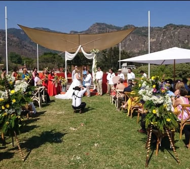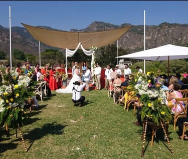 Espectacular vista a las montañas de Tepoztlán, hermoso jardín con la mayor amplitud para todo tipo de eventos con diferentes estilos de carpa al contratar
